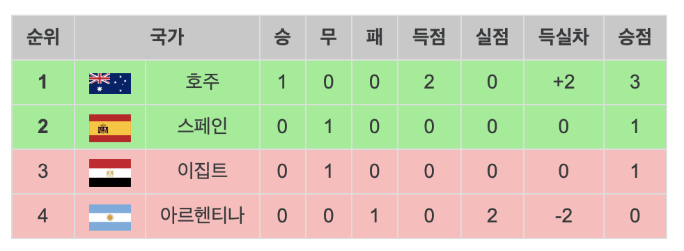 C조 조별예선 중계 무료 시청 채널 (호주 스페인 이집트 아르헨티나)